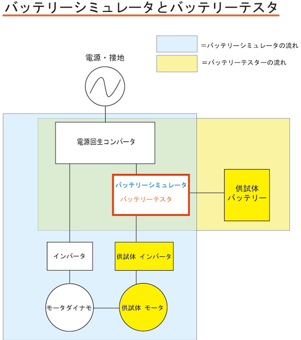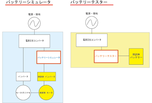 主にEV/HEV用バッテリーの充放電を様々な条件でシミュレートします。 定電圧モード、定電流モード、定電力モードの特定の条件を再現するだけでなく、プログラム運転、V-I任意特性グラフモード、上位からの指令も可能となっております。また、バッテリー特性計測時にはバッテリーテスタとなり、定電圧モード、定電流モード、定電力モードに加え、V-I任意特性グラフモード、ライフサイクルモード(充放電繰り返し)、高速充放電モード、加速寿命試験モード等の指定条件下での計測や、プログラム運転も可能です。
