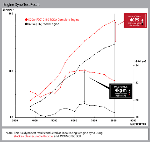 To meet this demand, Toda Racing introduces a next-level race engine that combines both engine refresh and increased performance. Engine displacement is increased through a stroker setup, and a full lineup of Toda Racing tuning components,